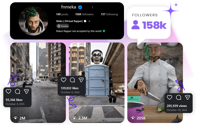 No Camera, No Filming, No Team Needed. Stay behind the scenes while your digital influencer becomes the face of your brand.