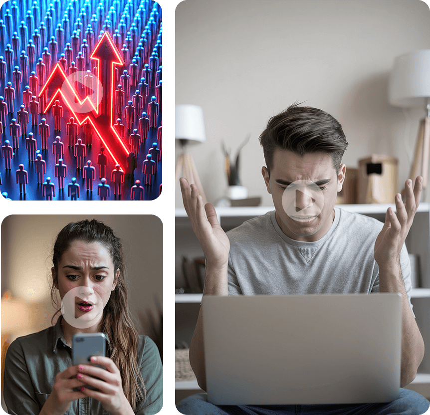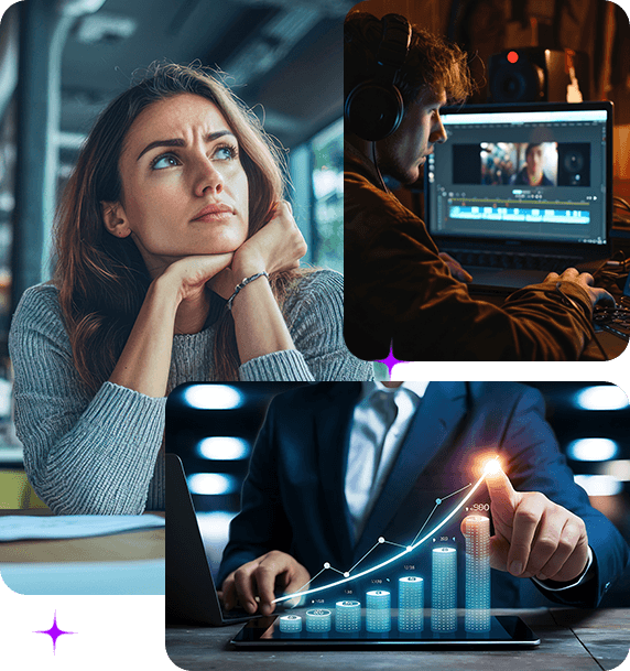 **THE OLD WAY** was broken, expensive, and frankly... EXHAUSTING! You'd spend THOUSANDS hiring video editors, voice artists, and designers. You'd waste HOURS juggling multiple apps just to create ONE mediocre post. You'd depend on unreliable freelancers who never understood your brand voice. And worst of all? You'd still end up with robotic, low-quality content that nobody cared about!