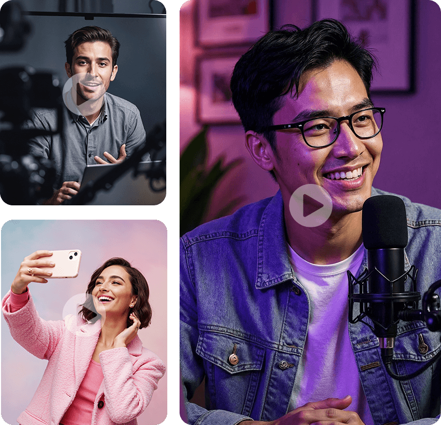 Simple! Our breakthrough AI generates photorealistic faces for any niche, creates your complete virtual influencer personality, writes viral scripts automatically, and adds emotional voiceovers that sound completely human. Plus, you get talking-head animations, 200+ viral subtitle styles, and 1-click sharing to TikTok, Instagram Reels, YouTube Shorts, and LinkedIn!